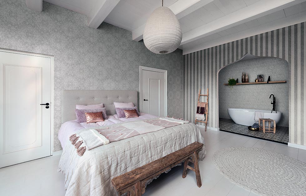 Estas fotografías son referenciales y representan algunos ejemplos de aplicación de los papeles murales de este catálogo. Los resultados pueden ser diferentes dependiendo del material donde son aplicados, la iluminación, decoración y otros factores.